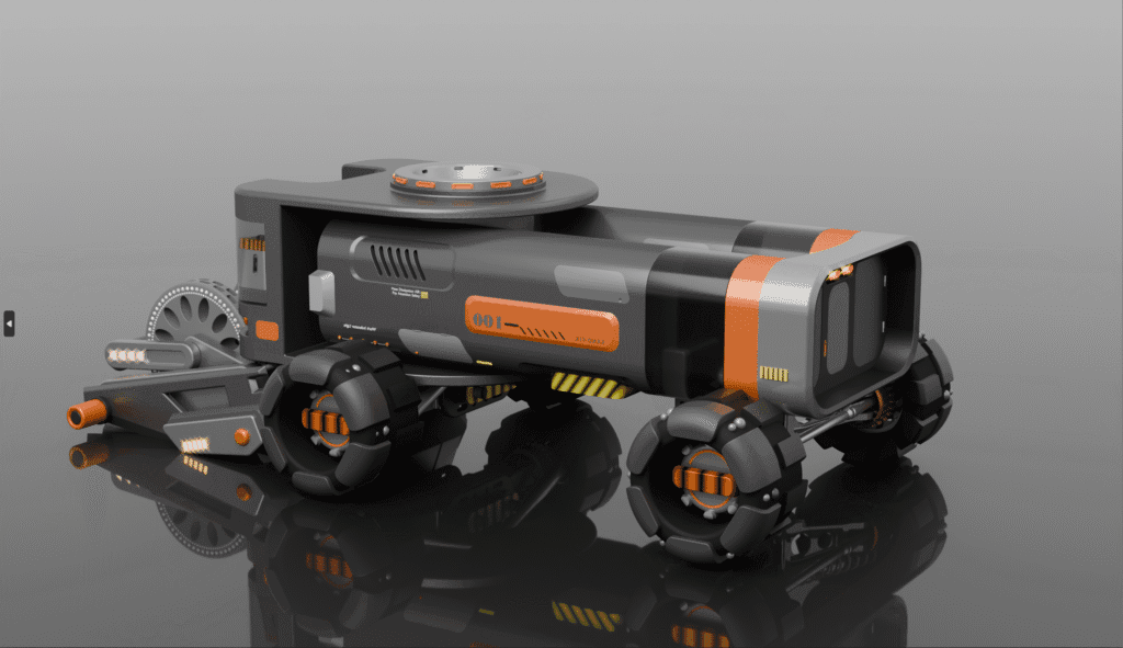 This work is an innovative design of a desert sand-fixing vehicle independently completed by the author. In the early stage, in-depth research was conducted on the desert environment and sand-fixing requirements. During the mid-stage, the overall vehicle structure was designed—the body is equipped with a large-capacity grass storage box, and the rear carries a precision grass-pressing device. Combined with all-terrain adaptive wheels, it ensures stable driving on sandy terrain and effective sand fixation. In the later stage, through 3D modeling, rendering, and layout, the unmanned intelligent control and remote monitoring system were fully presented, ultimately forming this equipment solution that enhances operational efficiency and supports ecological management.