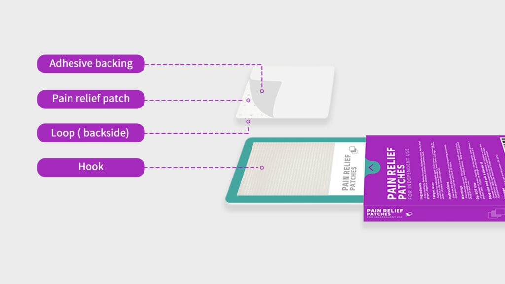 Pain relief patches can help patients relax their muscles and relieve pain. However, it is very difficult for people living alone (especially older people with inflexible joints) to put the pain relief patch on their backs. People often need to ask for help or use additional tools. The “Easy-Back Patch” enables users to independently apply the pain relief patch to their back without the assistance of others or additional tools. This packaging has with “double slide card” construction and “hook and loop fasteners”. It can be stretched from 15cm to 40cm. Users can simply follow the step-by-step instructions to complete the patch application process. It enhances the user experience, making it more enjoyable and simple, while also contributing to an increase in user independence and self-confidence.